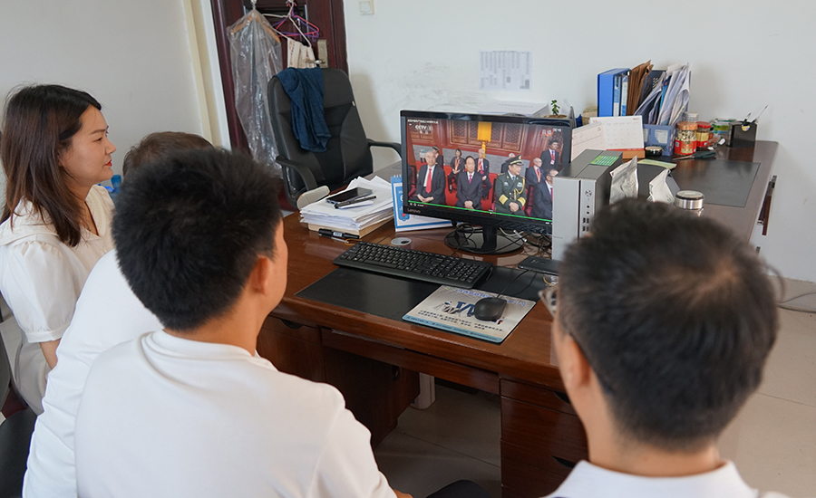 (文图/成忠旭)7月1日上午,庆祝中国共产党成立100周年大会在北京天安门广场隆重举行。PA视讯组织全体党员干部通过网络直播第一时间收看庆祝中国共产党成立100周年大会盛况,聆听习近平总书记重要讲话。