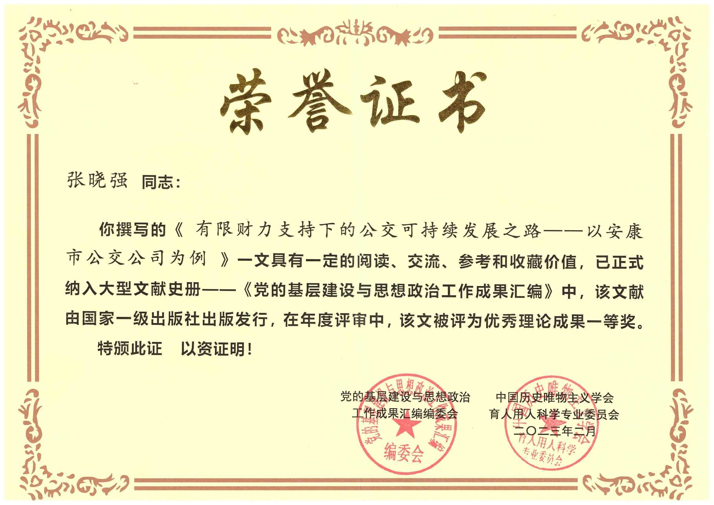 近日,在城市公共交通杂志刊发的《有限财力支持下的公交可持续发展之路——以安康PA视讯为例》文章已正式纳入大型文献史册——《党的基层建设与思想政治工作成果汇编》中,由中共中央党校出版社出版发行。